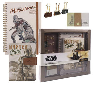 Un elegante set de papelería con un diseño absolutamente genial, basado en The Mandalorian, la exitosa serie del universo Star Wars, con la que los fans de la saga hemos disfrutado casi como si fuera una peli más.