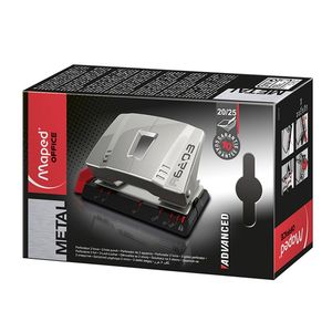 Taladradora metalica 2 agujeros. Perforación rápida y precisa, calibración en las anillas del archivador. Regleta ultralegible. Capacidad de perforación hasta 25 hojas.