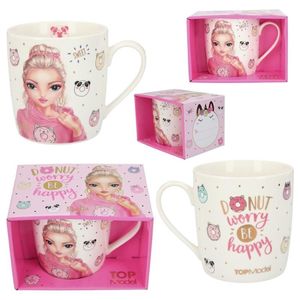 ¡Qué dulzura! No se puede decir otra cosa de la colección "Candy Cake" de TOPModel. El mug de esta colección se distingue por el característico diseño del donut, los lemas dorados, una imagen de la guapísima modelo de TOPModel Nadja y, además, por su extraordinaria calidad: es de porcelana New Bone china auténtica. Se presenta en un embalaje de cartón muy resistente y elaborado. ¡Hecho para regalar alegría!